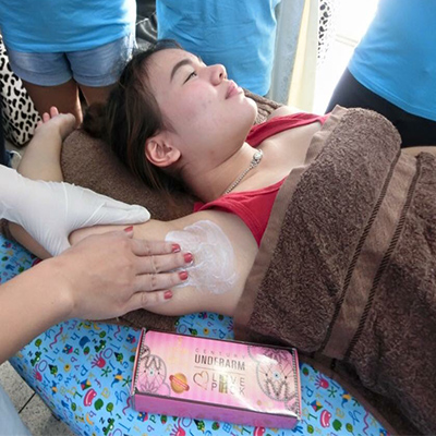 สำหรับผู้ไม่สะดวกมาใช้บริการที่ร้าน ชุด 1,990 นี้เรามีประกอบด้วย เซตแว๊กซ์รักแร้ สูตรไมโครเวฟ และเซตรักแร้ขาวเลิฟแพค (ชุดสครับ และเจลทารักแร้ขาว) ทำเองได้ที่บ้านจึงตอบโจทย์ สาวๆที่มีปัญหาขนรักแร้ + รักแร้ดำเห็นผลใน 1 ชุด เพียง 3 -4 วีค รู้เรื่องค่ะ หมดปัญหารักแร้ดำ ไม่เสียเซลฟ์ตอน ชู รักแร้อีกต่อไป"