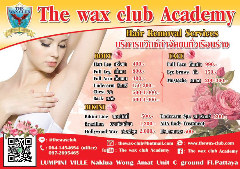the wax club ร้านแว๊กซ์กำจัดขน ดั้งเดิม มา 10 ปี จากร้านเล็กๆที่ตลาดนัดจตุจักรชลบุรี สู่ปีที่ 11 ผัน เป็น the wax club Academy Center ที่คอนโดลุมพินีวิลล์ พัทยา เราคลุกคลีกับปัญหา ขนใต้วงแขน รักแร้ดำ ตุ่มหนังไก่ และกลิ่นไม่พึงประสงค์ มามากมาย กับสาวๆที่ไม่มั่นใจ เวลาใส่ แขนกุด สายเดี่ยว เกาะอก
