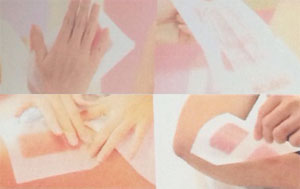 3) กดแถบแว๊กซ์ลงบนผิวหนังตามแนวของเส้นขนแล้วใช้มือถูลงบนแผ่นแว๊กซ์ให้รู้สึกอุ่น